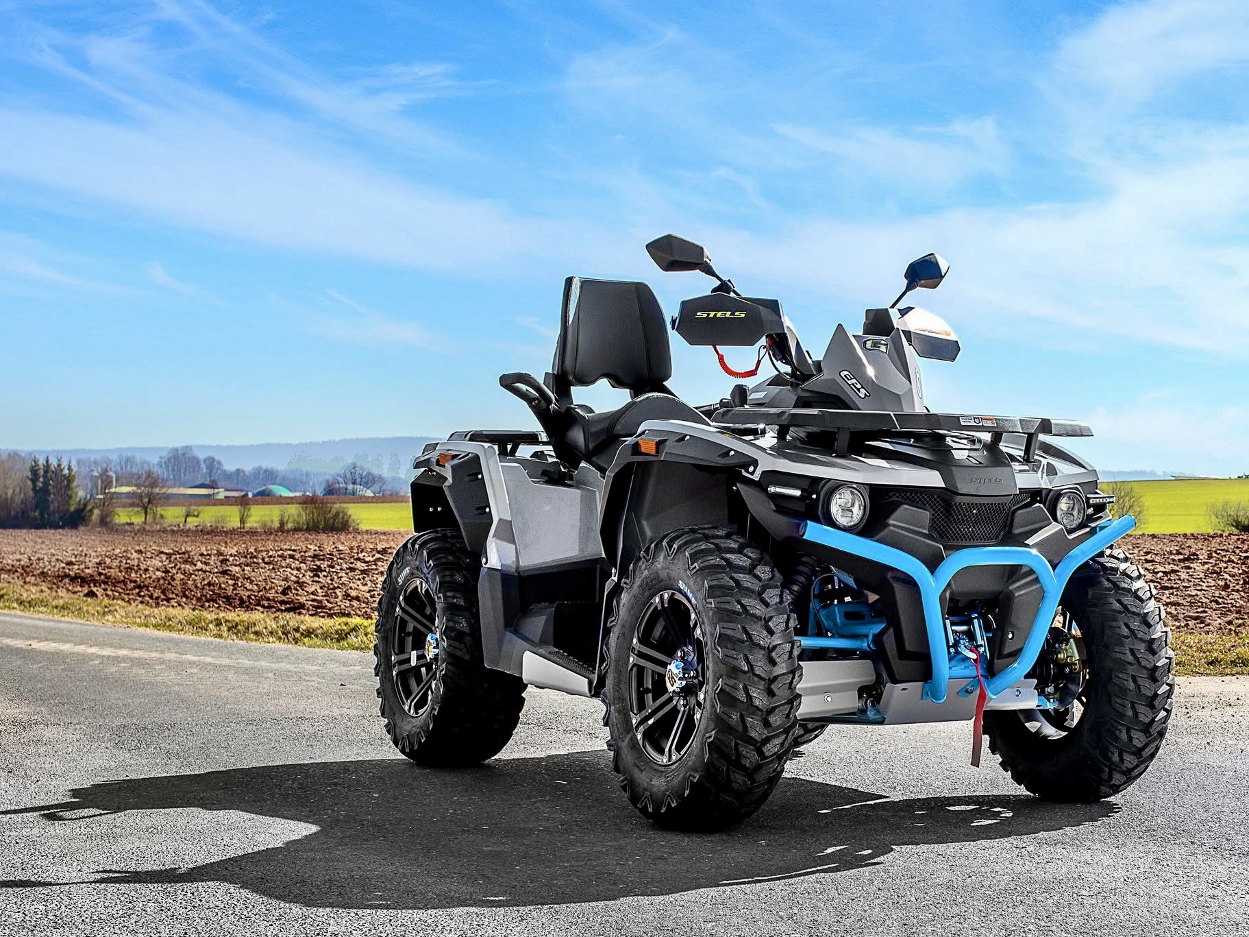 Doch da hatte Braun längst ein neues Ass aus dem Ärmel gezogen. Ab 2018 importierte Quadix auch ATVs der Marke Stels. Die kam aus Russland und war hierzulande völlig unbekannt. Das änderte sich schnell, denn Braun drückte auch die Stels-Modelle gemäß seiner Erfolgsformel "attraktives Produkt, vernünftiger Preis" in den Markt. Und der Markt fand schnell Gefallen an diesen in russischer Massivbauweise gefertigten Maschinen; allerdings nicht an allen, denn die russische Modellpolitik war durchaus seltsam. Es gab den 850er Guepard Trophy Pro als Top-Modell mit 68 PS und gleich darunter eine 800er mit sieben PS weniger. Die wollte natürlich kein Mensch. Also machte Braun aus der Not ein Tugend, montierte farblich abgesetzte Bumper an die Kleine, verpasste ihr ein paar schicke Carbonteile und legte sie 11 cm tiefer. Fertig war die Stels 800 Touring, optimiert für die Straße und erfolgreich vermarktet als - na klar - streng limitierte "Special Edition".
